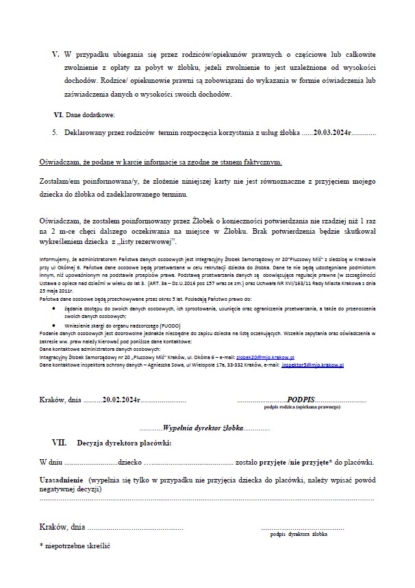 Instrukcja wypełnienia karty zapisu dziecka
